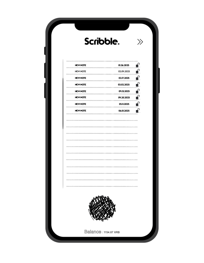• Minimal Fees with XRB Tokens: The Scribble (XRB) token fuels the app by enabling users to pay small fees for additional storage. As the app grows and users require more space for their notes, XRB tokens can be used to unlock extra storage capacity, ensuring a seamless experience without compromising on decentralization.